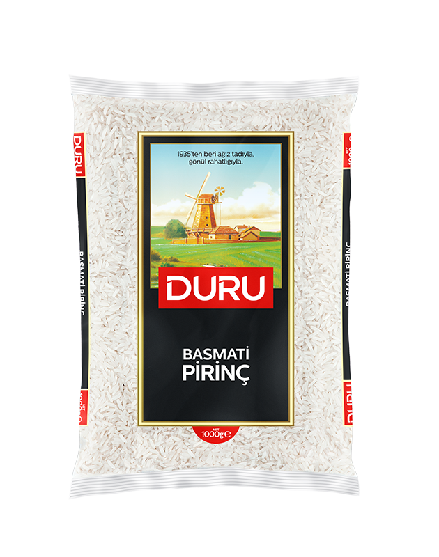 Duru Basmati Pirinç, glisemik indeksi düşük ve protein oranı yüksek özel bir pirinç çeşididir. Pişirildiğinde boyca uzayan yapısıyla mükemmel pilavlar için idealdir. En kaliteli basmati pirinçler özenle seçilir ve ISO 22000, IFS ve BRC sertifikalarına sahip tesislerde uzmanlıkla paketlenir.
