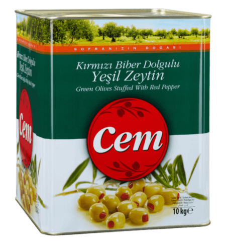 Cem Kırmızı Biber Dolgulu Yeşil Zeytin 10 kg