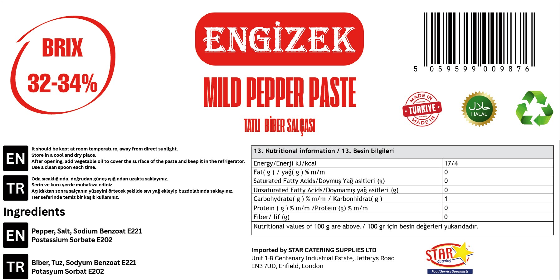• Ürün Adı: ENGİZEK Mild Pepper Paste (Tatlı Biber Salçası)