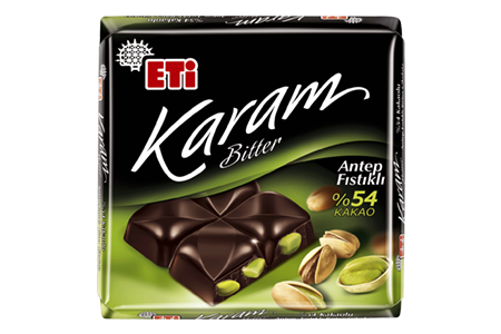 Karam %54 Kakaolu Antep Fıstıklı Bitter Çikolata
