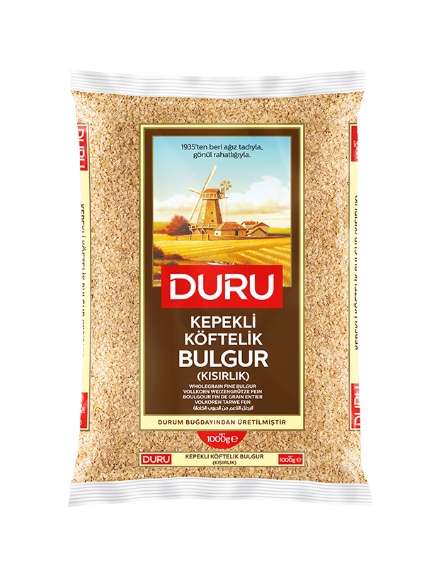 Duru Kepekli Köftelik Bulgur, doğal taş değirmen teknolojisiyle üretilir ve kepekli yapısı sayesinde lif, bitkisel protein, mineral ve vitamin bakımından zengindir. Kısır, tabule ve köfteler için ideal olup, lezzetli ve besleyici salatalar hazırlamak için tercih edilir.