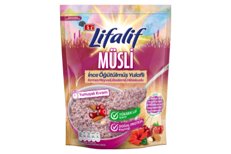 Lifalif İnce Öğütülmüş Yulaflı, Kırmızı Meyveli, Bademli, Hibiskuslu Müsli