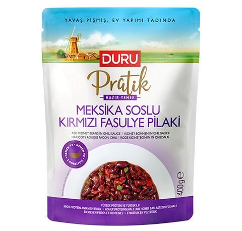 Zamanı değerli olanlara ve lezzetten taviz vermeyenlere Duru Pratik Meksika Soslu Kırmızı Fasulye Pilaki istediği her an ve her yerde eşlik ediyor. Duru Pratik Hazır Yemek paketlerini açın ve öğünlerinize lezzet katın.