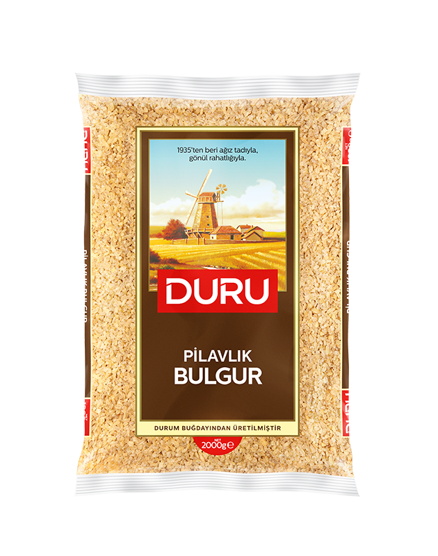 Duru Pilavlık Bulgur, doğal taş değirmen teknolojisiyle üretilir ve kepekli yapısını koruyarak yüksek lif, bitkisel protein, mineral ve vitamin içerir. Türkiye'de üretilen bu bulgur, en kaliteli buğdaylarla hazırlanır ve pilav, çorba, salata gibi birçok yemekte kullanılabilir. 2000 gramlık ambalajda sunulmaktadır.